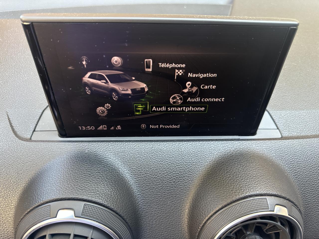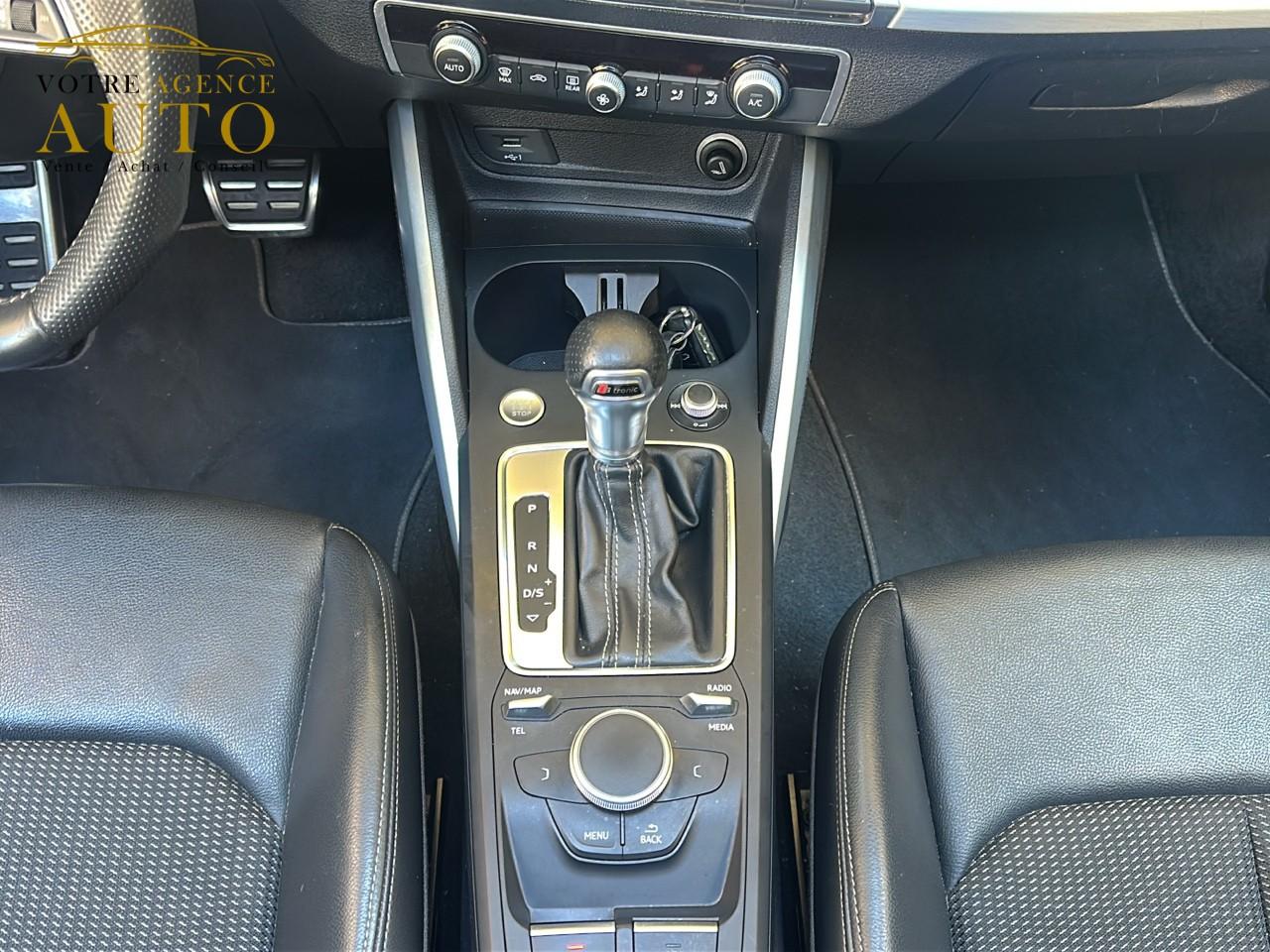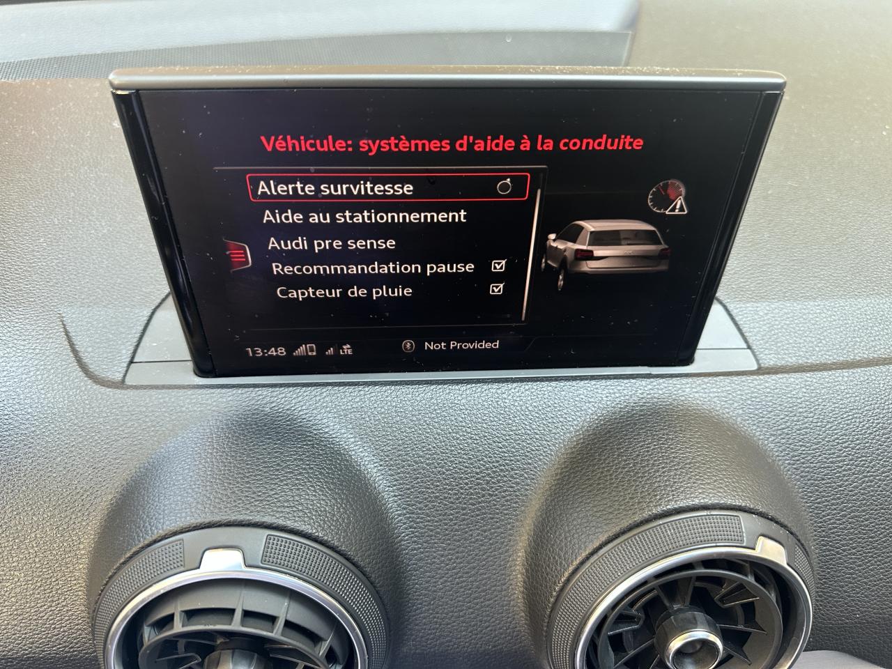 Accoudoir central avantAffichage du contrôle de la pression des pneumatiquesAirbags grand volume pour le conducteur et le passagerAirbags latéraux à l'avant et système d'airbags de têteAntipatinage ASR pour une motricité optimale, empêche le patinage des roues motricesApplications décoratives en aluminium brossé matAppuie-tête à l'avant, réglables en hauteurAudi connect 3 moisAudi Drive SelectAudi Hold AssistAudi Music InterfaceAudi Parking System : système acoustique d'aide au stationnement arrièreAudi pre sense front avec détection des piétonsAudi smartphone interfaceAudi Sound SystemBande grise en haut du pare-briseBlade Argent glacierBlocage électronique de différentiel (EDS)Boîte de vitesses S tronic séquentielle à 7 rapports à double embrayage avec commande électrohydrauliqueBoîtiers de rétroviseurs extérieurs dans la teinte du véhiculeCâbles de recharge pour téléphone portable, compatibles iPhone et AndroidCeinture de sécurité réglable en hauteurCeintures de sécurité 3 points automatiques pour toutes les placesCeintures de sécurité assorties à la couleur des garnituresChâssis “Sport”Ciel de pavillon en tissu noirClimatisation automatiqueColonne de direction de sécuritéContrôle de port de ceinture sur siège conducteur et passager AVContrôle électronique de stabilité (ESC)Désactivation de l'airbag du passager avantDétecteur de pluie et allumage automatique des projecteursDéverrouillage de coffre par touche douce : déverrouillage avec assistance électriqueDirection assistée électromécaniqueDirection progressiveDispositif anti-erreur de carburantDossier de banquette arrière rabattable en deux parties , 1/3, 2/3 ou complétementEclairage intérieur, à temporisation avec contacteurs sur toutes les portières ; éclairage du coffreEcrous antivolFeux arrière rouges, avec feux de recul blancs et feux de brouillard arrière intégrés, feux de plaque arrière à LED ; incluant troisième feu stop surélevéFixation pour sièges enfants ISOFIX et Top Tether pour les places arrière extérieuresFrein de stationnement electromécaniqueFreins à disque à l'avant et à l'arrièreIdentification du modèle/technologie sur le capot de coffre ; sur demande sans identification du modèle à l'arrièreInscription “S line” sur les ailes avantInterface BluetoothJantes en aluminium coulé style 5 branches en Y, 7 J x 18 avec pneus 215/50 R 18Lave-pharesLimitateur et régulateur de vitesseMMI navigationMoulures de seuils avec insert en aluminium et emblème S, éclairéesPare-soleil avec miroirs de courtoisiePédales et repose-pied en acier inoxydablePeinture intégralePhares à LED avec clignotants arrière à LED dynamiquesPommeau du levier/sélecteur de vitesses en cuir perforé noirProtection antidémarrage électronique, intégrée à la gestion du moteur, activation automatique par la clé du véhiculeRéception radio numérique, réception des signaux DAB, DAB+ et DMB AudioRécupération d'énergie, générée lors des phases de freinage ou de décélération permettant une économie de carburantRepose-genoux et diffuseurs d'air laquésRéservoir AdBlue de 12 LRétroviseurs extérieurs avec clignotants à LED intégrésRétroviseurs extérieurs rabattables automatiquementRétroviseurs extérieurs réglables et escamotables électriquement, dégivrants des deux côtés et buses de lave-glaces dégivrantesSécurité enfantsSellerie S line en tissu Pulse/cuir noirSet de réparation pour pneus avec compresseur 12 volts et produit de colmatage pour les pneus, vitesse maximale 80 km/hSièges avant réglables manuellement en hauteur et en profondeurSièges avant sportSortie d'échappement avec embout chroméSortie d'échappement monoflux avec 1 sortie à gaucheSurpiqûres contrastées sur les selleries, volant Sport en cuir, soufflet de levier/sélecteur de vitesses ainsi que tapis complémentairesSuspension sportSystème d'information du conducteur avec écran couleurSystème Start/Stop désactivableTapis complémentaires à l'avant et à l'arrièreTriangle de pré-signalisationTrousse de secoursVide-pochesVitres électriques avant et arrièreVitres latérales et arrière athermiqueVolant réglable manuellement en hauteur et en profondeurVolant Sport S line en cuir style 3 branches avec multifonction avec emblème S (poignées de volant en cuir perforé)