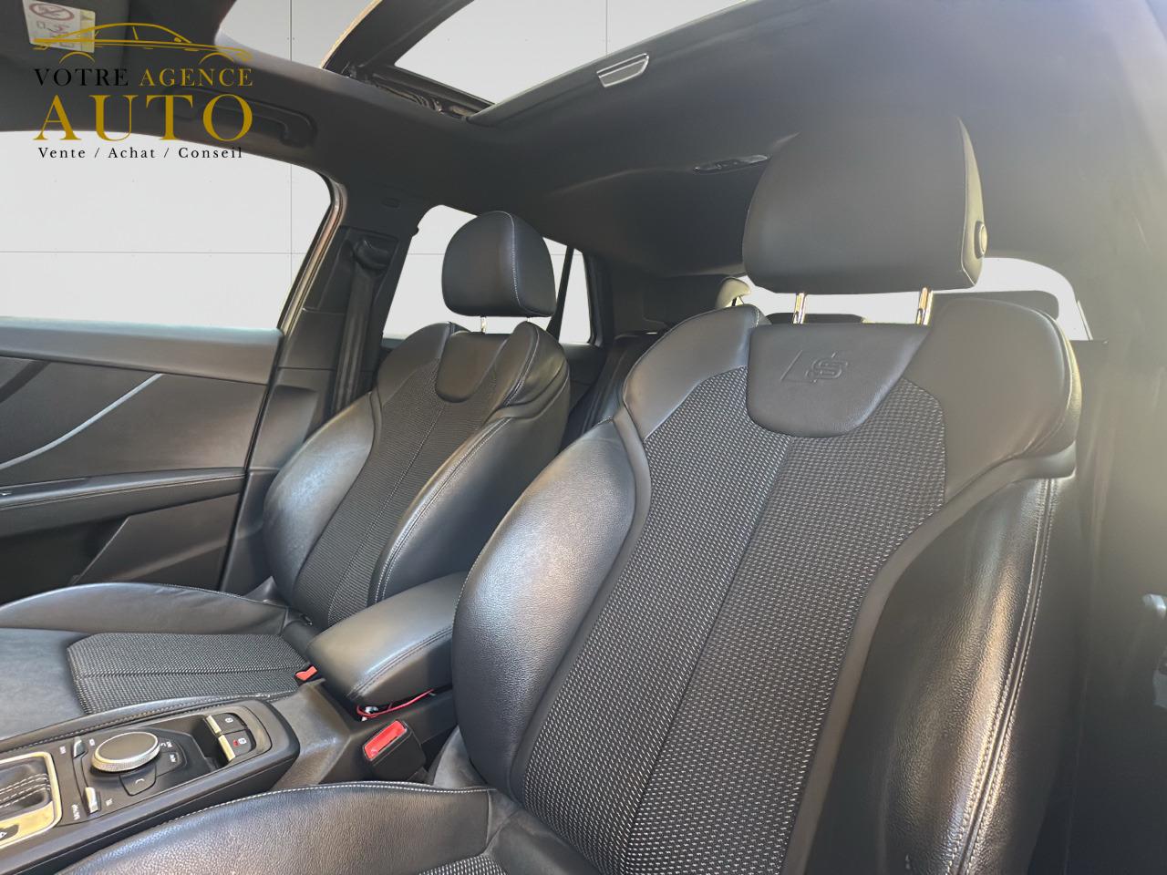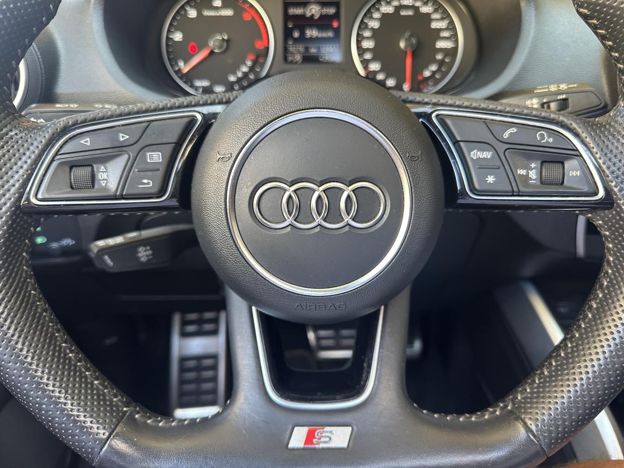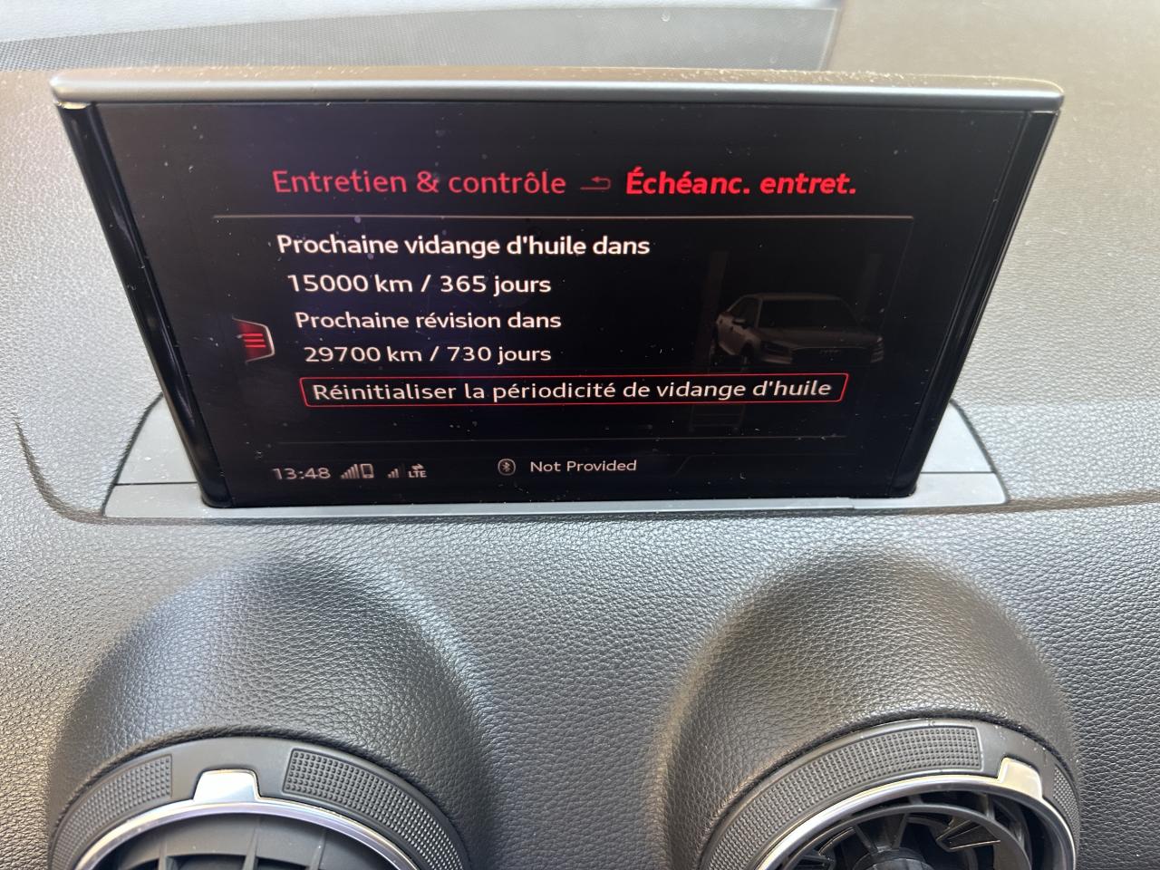 Accoudoir central avantAffichage du contrôle de la pression des pneumatiquesAirbags grand volume pour le conducteur et le passagerAirbags latéraux à l'avant et système d'airbags de têteAntipatinage ASR pour une motricité optimale, empêche le patinage des roues motricesApplications décoratives en aluminium brossé matAppuie-tête à l'avant, réglables en hauteurAudi connect 3 moisAudi Drive SelectAudi Hold AssistAudi Music InterfaceAudi Parking System : système acoustique d'aide au stationnement arrièreAudi pre sense front avec détection des piétonsAudi smartphone interfaceAudi Sound SystemBande grise en haut du pare-briseBlade Argent glacierBlocage électronique de différentiel (EDS)Boîte de vitesses S tronic séquentielle à 7 rapports à double embrayage avec commande électrohydrauliqueBoîtiers de rétroviseurs extérieurs dans la teinte du véhiculeCâbles de recharge pour téléphone portable, compatibles iPhone et AndroidCeinture de sécurité réglable en hauteurCeintures de sécurité 3 points automatiques pour toutes les placesCeintures de sécurité assorties à la couleur des garnituresChâssis “Sport”Ciel de pavillon en tissu noirClimatisation automatiqueColonne de direction de sécuritéContrôle de port de ceinture sur siège conducteur et passager AVContrôle électronique de stabilité (ESC)Désactivation de l'airbag du passager avantDétecteur de pluie et allumage automatique des projecteursDéverrouillage de coffre par touche douce : déverrouillage avec assistance électriqueDirection assistée électromécaniqueDirection progressiveDispositif anti-erreur de carburantDossier de banquette arrière rabattable en deux parties , 1/3, 2/3 ou complétementEclairage intérieur, à temporisation avec contacteurs sur toutes les portières ; éclairage du coffreEcrous antivolFeux arrière rouges, avec feux de recul blancs et feux de brouillard arrière intégrés, feux de plaque arrière à LED ; incluant troisième feu stop surélevéFixation pour sièges enfants ISOFIX et Top Tether pour les places arrière extérieuresFrein de stationnement electromécaniqueFreins à disque à l'avant et à l'arrièreIdentification du modèle/technologie sur le capot de coffre ; sur demande sans identification du modèle à l'arrièreInscription “S line” sur les ailes avantInterface BluetoothJantes en aluminium coulé style 5 branches en Y, 7 J x 18 avec pneus 215/50 R 18Lave-pharesLimitateur et régulateur de vitesseMMI navigationMoulures de seuils avec insert en aluminium et emblème S, éclairéesPare-soleil avec miroirs de courtoisiePédales et repose-pied en acier inoxydablePeinture intégralePhares à LED avec clignotants arrière à LED dynamiquesPommeau du levier/sélecteur de vitesses en cuir perforé noirProtection antidémarrage électronique, intégrée à la gestion du moteur, activation automatique par la clé du véhiculeRéception radio numérique, réception des signaux DAB, DAB+ et DMB AudioRécupération d'énergie, générée lors des phases de freinage ou de décélération permettant une économie de carburantRepose-genoux et diffuseurs d'air laquésRéservoir AdBlue de 12 LRétroviseurs extérieurs avec clignotants à LED intégrésRétroviseurs extérieurs rabattables automatiquementRétroviseurs extérieurs réglables et escamotables électriquement, dégivrants des deux côtés et buses de lave-glaces dégivrantesSécurité enfantsSellerie S line en tissu Pulse/cuir noirSet de réparation pour pneus avec compresseur 12 volts et produit de colmatage pour les pneus, vitesse maximale 80 km/hSièges avant réglables manuellement en hauteur et en profondeurSièges avant sportSortie d'échappement avec embout chroméSortie d'échappement monoflux avec 1 sortie à gaucheSurpiqûres contrastées sur les selleries, volant Sport en cuir, soufflet de levier/sélecteur de vitesses ainsi que tapis complémentairesSuspension sportSystème d'information du conducteur avec écran couleurSystème Start/Stop désactivableTapis complémentaires à l'avant et à l'arrièreTriangle de pré-signalisationTrousse de secoursVide-pochesVitres électriques avant et arrièreVitres latérales et arrière athermiqueVolant réglable manuellement en hauteur et en profondeurVolant Sport S line en cuir style 3 branches avec multifonction avec emblème S (poignées de volant en cuir perforé)