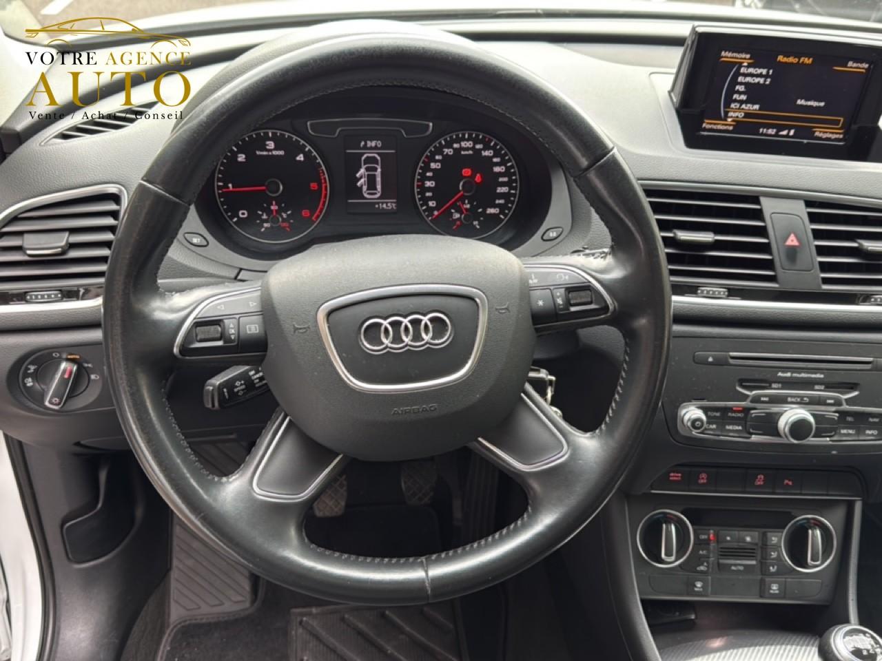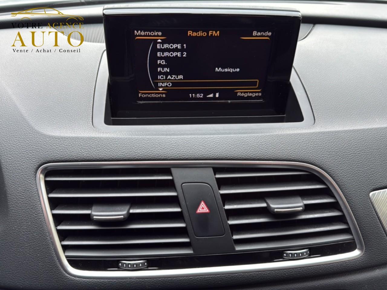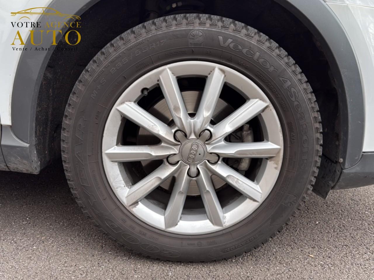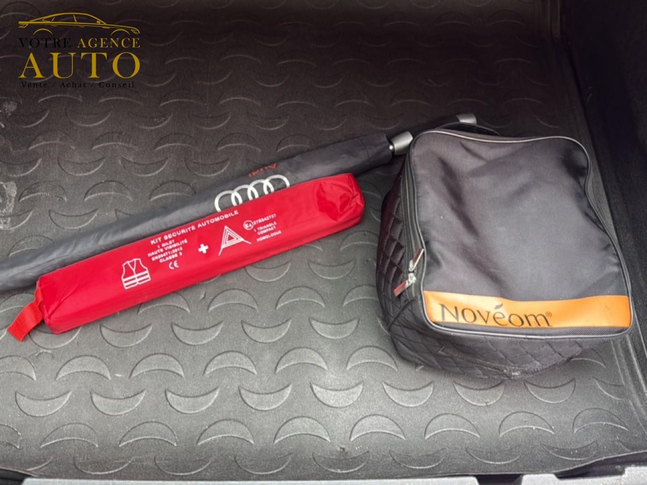 ABS (antiblocage de roue) avec répartiteur de freinage EBV et assistance hydraulique au freinage d'urgenceAccoudoir central avant avec vide-pochesAirbags conducteur et passagerAirbags frontaux conducteur et passager grand volume, à deux niveaux de gonflement suivant la gravité du choc, latéraux avant et arrière intégrés aux dossiers des siègesApplications décoratives en aluminium tangente argentAppuie-têtes intégraux à l'avant et à l'arrièreASR (antipatinage) pour une motricité et une rigidité transversale optimalesAudi Drive Select avec mode «efficiency»Audi Hold AssistAudi Parking System PlusAudi Singleframe, encadrement gris pierre d'une seule pièce sur la calandre, avec anneaux Audi anodisés au centreAvertisseur deux tons sur le moyeu du volantBanquette arrière rabattable 60/40, déverrouillage à distance des dossiers via un levier dans la garniture latérale du coffreBecquet de pavillonCarrosserie galvaniséeCeintures de sécurité trois points à enrouleur à toutes les places avec prétensionneur réversible, limiteur de tension et réglage en hauteur à l'avantChâssis DynamiqueCiel de pavillon en tissu assorti à la couleur intérieure, argent lunaire ou beige pistacheClimatisation automatique "Confort"Colonne de direction réglable manuellement en hauteur et en profondeurConsole centrale, surélevée, avec vide-poches pouvant être utilisé comme porte-boissons avec volet ouvertContact d'allumage électroniqueContrôle de la pression des pneus avec signaux acoustique et visuel de perte de pressionCouvre-bagages amovible coulissant automatiquement par glissièresDétecteur de pluie et allumage automatique des projecteursDétecteur de port de ceinture avec signaux acoustique et visuel à l'avantDéverrouillage de coffre par touche douceDirection électromécanique à assistance variableEclairage du coffre et de la boîte à gantsEclairage intérieur, à l’avant et à l’extérieur ; avec extinction temporisée et contacteur sur toutes les portièresEcrous antivolEDS (blocage électronique de différentiel)ESP (programme électronique de stabilisation)Essuie-glace arrière avec déclenchement automatique en marche arrièreEssuie-glace deux vitessesFeux arrière à technologie LEDFixations pour sièges enfant ISOFIX aux places extérieures arrièreFrein de stationnement electromécaniqueHayon assisté électriquement pour l'ouverture et la fermetureIdentification du modèle à l'arrière, inscription “quattro” à l'arrière, sur la calandre et sur le tableau de bord côté passager avant ; sur demande sans identification du modèleIndicateur de rapport de vitesse dans le système d'information du conducteurInstrumentation, avec éclairage réglableInterface BluetoothJantes en aluminium coulé 10 branches, 7J x 17”, avec pneus 235/55 R17Lève-vitres électriques à l'avant et à l'arrière avec protection antipincement et fonction ouverture/fermeture Confort par impulsionLunette arrière dégivrante avec minuterieMiroir de courtoisieMMI Radio/Autoradio concertMoulures de seuils de portes en plastiqueOEilletons de fixation, quatre oeilletons dans le coffre pour maintenir les bagages et objetsOrdinateur de bord monochrome et système de contrôle Autocheck, incluant programme EfficiencyOutillage de bord dans le coffrePack Aluminium extérieurPack aluminium intérieurPack brillancePack ConnectivityPack navigation avec données de navigation (carte SD)Pack RangementPare-brise acoustique avec bande grisePare-chocs, laqués dans la couleur de carrosserie, bas de pare-chocs avant et arrière ainsi que bandeaux de portières en bas, noir, matPare-soleil rabattables et pivotants, côtés conducteur et passager avant, avec miroir de courtoisie occultablePeinture contrastéePeinture verniePoignées de maintien avec mécanisme amortisseurPoignées de portes couleur carrosseriePorte-boissons double dans la console centralePréparation pour crochet d'attelagePréparation pour système de repérage satellite permettant la localisation du véhicule en cas de volProjecteurs Xénon plus et feux de jour à LEDProtection antidémarrage électronique, intégrée à la gestion du moteur, activation automatique par la clé du véhiculeProtections latérales anticollisionRampes de pavillon en aluminium poliRéglage d'appuis lombaires électriques sur 4 plans pour sièges avantRégulateur de vitesseRétroviseur intérieur électrochromeRétroviseurs extérieurs escamotables électriquement, dégivrants des deux côtés et buses de lave-glaces dégivrantesRétroviseurs extérieurs réglables électriquement et dégivrants avec clignotants intégrés à LED, boîtiers dans la couleur de carrosserie, miroir asphérique à gauche, convexe à droiteRoue de secours temporaire avec cric de levageSécurité enfants sur le verrouillage des ceintures à enrouleur côté passager avant et à l'arrièreSécurité enfants sur les portières et les vitres électriques arrièreSellerie en tissu InspirationSeuils de portes en aluminium et protection du seuil de chargement en acier inoxydableSièges avant avec réglage manuel de la hauteur, de la longueur et des appuie-tête, ainsi que réglage de l‘inclinaison du dossierSingleframe : calandre monobloc, couleur gris pierreSorties d'échappement : visible monoflux, deux sorties à gauche, avec embout chroméSystème d'information du conducteur avec écran blanc TFT monochrome de 3,5 poucesSystème Start/ Stop avec récupération d'énergie de freinageTapis complémentaires à l'avant et à l'arrière, couleur assortie à celle de la moquette, en veloursTémoins de contrôle pour airbags, ESC/ASR, adaptive air suspension, EDS, frein de stationnement électromécanique, régulateur de vitesse, feux de route,feux arrière antibrouillard, clignotants, électronique moteur et protection antidémarrageTriangle de présignalisation, trousse de secours et outillage de bordVerrouillage centralisé avec fonction Autolock et télécommande à fréquence