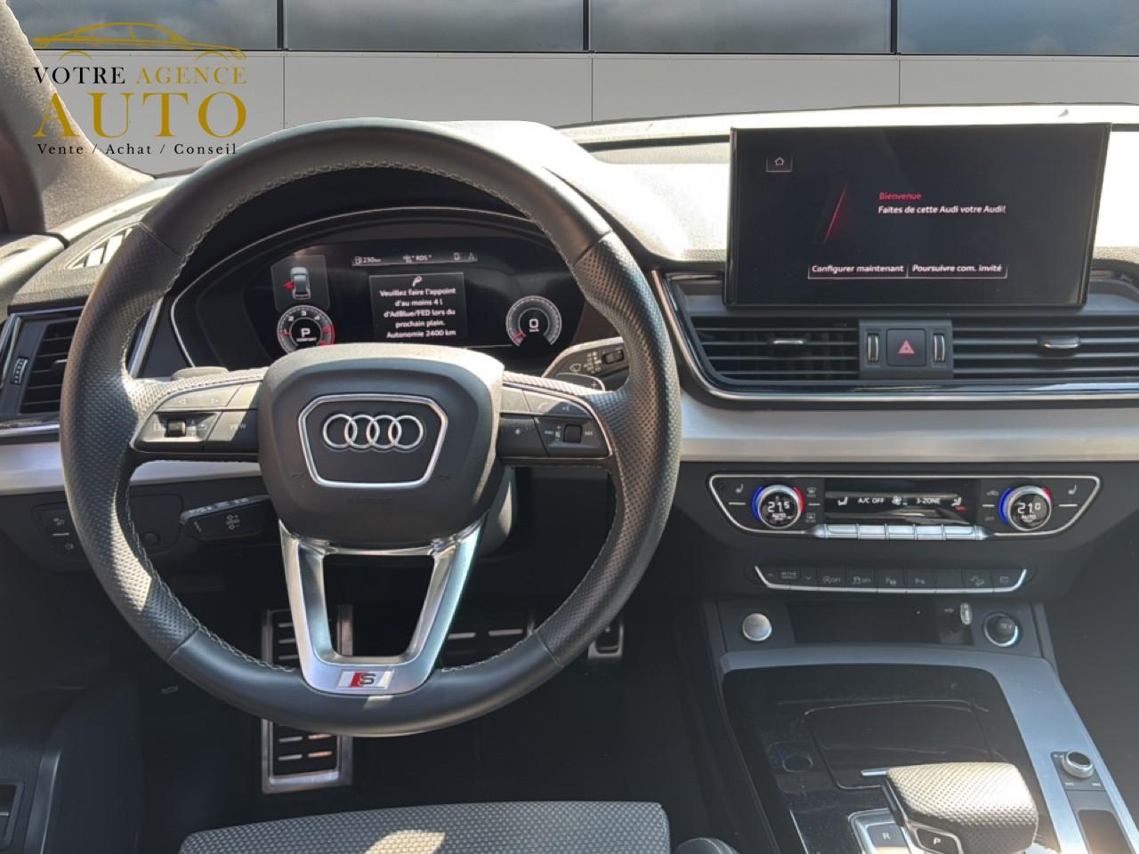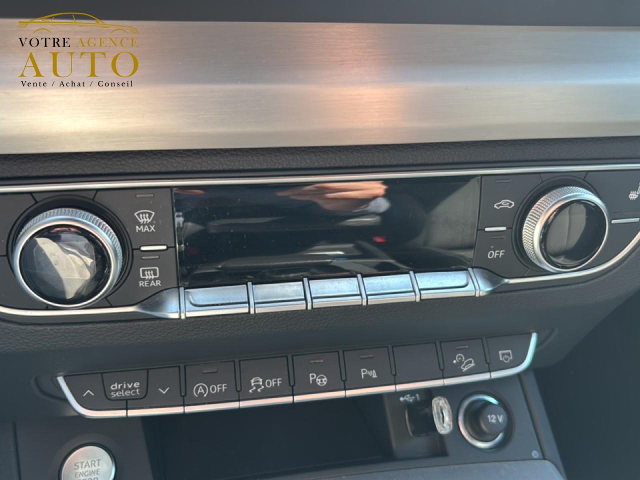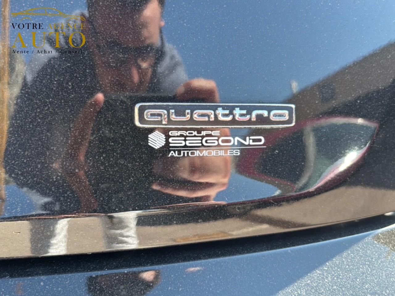 8 haut-parleurs passifsAccoudoir central confort à l'avant avec inclinaison réglable et coulissant en longueurAffichage du contrôle de la pression des pneumatiquesAirbags grand volume pour le conducteur et le passagerAirbags latéraux à l'avant et système d'airbags de têteAntipatinage ASR pour une motricité optimale, empêche le patinage des roues motricesAppel d’urgence et service Audi connect incluant commande du véhiculeApplications décoratives en aluminium brossé matAppui lombaire à 4 axes pour les sièges avant, réglage électrique, horizontal et verticalAudi connect avec carte SIM intégrée (e-SIM) et licence d'utilisation pour 3 ansAudi Drive SelectAudi Hold AssistAudi parking system plus : signal acoustique et visuel d'aide au stationnement avant et arrière par pictogrammes sur l'écranAudi phone box lightAudi pre sense cityAudi smartphone interface (Apple CarPlay ou Google Android Auto)Audi sound system : 10 haut-parleurs incluant un haut-parleur central et un subwoofer ; amplificateur à 6 canaux avec une puissance totale de 180 wattsAudi virtual cockpit plus : combiné d'instruments entièrement numérique de 12,3" en résolution Full HDBanquette arrière plusBlocage électronique de différentiel (EDS)Câbles de recharge pour téléphone portable, compatibles iPhone et AndroidCaméra de reculCaméra multifonctionCeintures de sécurité automatiques à trois points pour tous les sièges et contrôle de port de ceinture à l’avantChâssis sport SCiel de pavillon en tissu noirClimatisation automatique confort 3 zonesColonne de direction de sécuritéCommande de désactivation d'airbag passager avantDétecteur de pluie et allumage automatique des projecteursDirection assistée électromécaniqueDispositif anti-erreur de carburantDossier de banquette arrière rabattable à distance et en trois parties 40 : 20 : 40 ou complètementEcrous antivolESC (contrôle électronique de stabilisation)Finitions Extérieures S lineFixation pour sièges enfants ISOFIX et Top Tether pour les sièges extérieurs arrière support normalisé pour une fixation pratique des sièges enfants ISOFIXHayon de coffre à ouverture et fermeture électriquesIdentification du modèle selon le nouveau marquage de puissanceInterface BluetoothInterfaces de charge USB pour les passagers arrièreJantes en aluminium en style étoile à 5 bras, 8,0J x 18’’ Pneus : 235/60 R 18Keyless Entry et Keyless GoLave-phares haute pressionMotorisations avec technologie hybride léger (Mild Hybrid)Moulures de seuil avec insert en aluminium à l’avant, éclairées, avec inscription SNavigation MMI plus avec MMI touchOutillage de bordPack Brillance ExtérieurPack EclairagePack Eclairage intérieurPack Rangement et CoffrePare-soleil côté conducteur et passagerPassage de roue contrasté en plastique noir grainéPédalier et repose-pied en acier inoxydablePeinture vernie Blanc ibisPréparation pour crochet d'attelageProjecteurs Matrix LED et feux arrière à LED avec clignotants dynamiquesProtection antidémarrage électronique, intégrée à la gestion du moteur, activation automatique par la clé du véhiculeRampes de pavillon en aluminium anodiséRéception radio numérique : réception des signaux DAB, DAB+ et DMB audioRecommandation de reposRécupération en augmentant la tension du générateur, l'énergie cinétique est convertie en énergie électrique utilisable durant les phases de décélération ou de freinageRégulateur et limiteur de vitesseRéservoir AdBlue 24LRéservoir de 70 litresRétroviseur intérieur à position nuit automatique, sans encadrementRétroviseurs extérieurs avec clignotants à LED intégrés couleur carrosserieRétroviseurs extérieurs escamotables électriquement, dégivrants, jour/nuit automatique des deux côtésS tronic : boîte séquentielle 7 vitesses à double embrayageSécurité enfants manuelleSellerie mixte Cuir / Séquence S lineSièges avant réglables manuellement en hauteur et en profondeur, appuie-tête réglables manuellementSièges Sport à l'avantSurfaces d’accentuation façon verre en noirSystème Start/Stop réduit la consommation de carburant ainsi que les émissions de CO2Tapis complémentaires à l'avant et à l'arrièreTapis de coffreTire Mobility System : compresseur et produit de colmatage en cas de crevaisonTransmission quattroTriangle de présignalisation et trousse de secoursVide-poches dans les contre-portes avant et arrièreVitrage acoustique pour les vitres de portières avantVitres athermiquesVitres surteintées (vitrage Privacy) lunette arrière et vitres latérales arrière surteintéesVolant réglable manuellement en hauteur et en profondeurVolant Sport contour en cuir style 3 branches aplati en bas avec multifonction plus et palettes de changement de vitesses