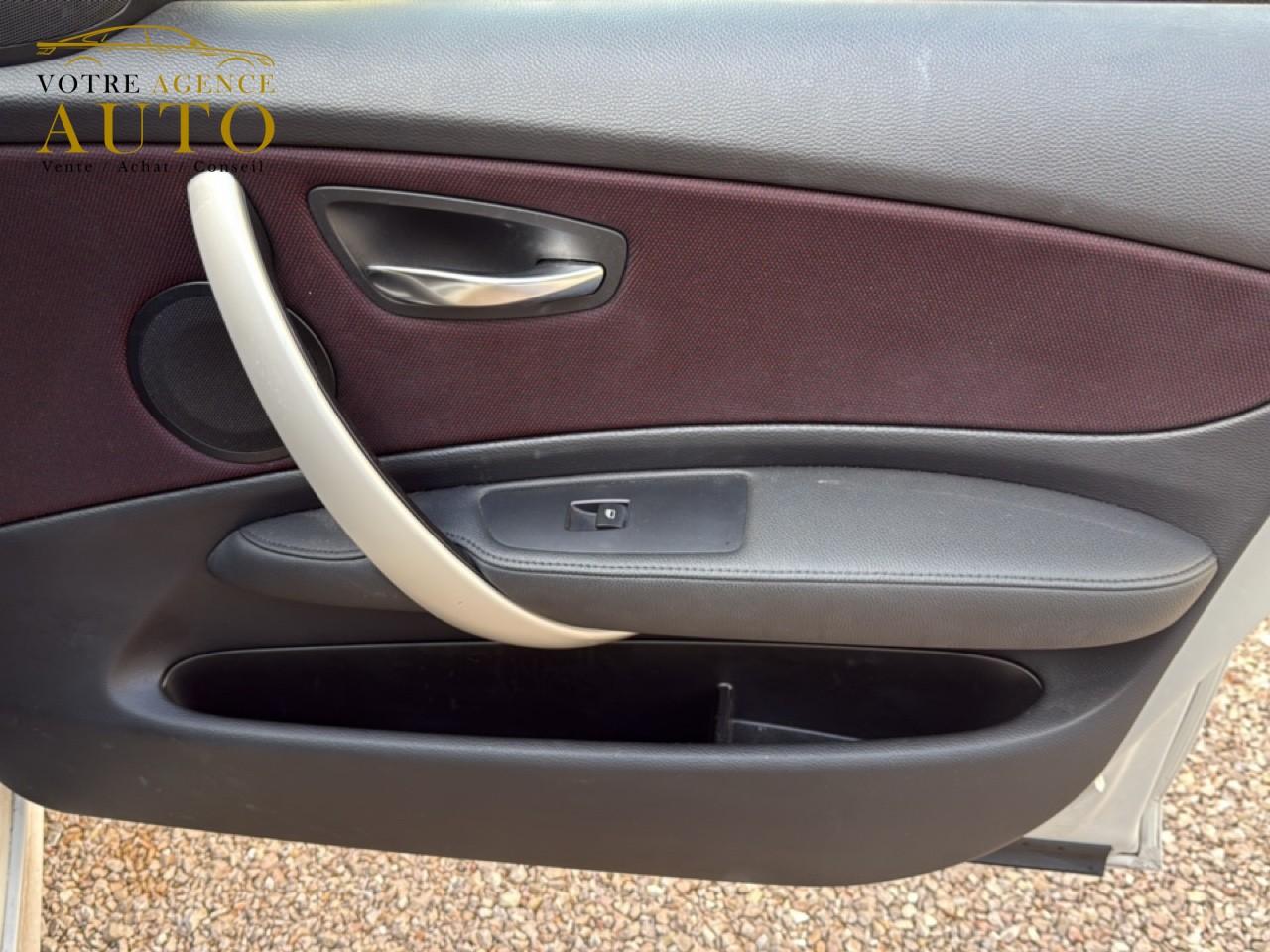 ABS (Antiblocage de roues)Accoudoir central avantAirbags conducteur et passagerAirbags de tête avant et arrière avec voile de protection contre les débris de verreAirbags latéraux avantAnti-démarrage électronique EWS IIIAppuis-tête et ceintures de sécurité 3 points à toutes les placesAutoradio BMW Business CD , 5 haut-parleurs, compatibilité MP3 et prise AUX-INAutoradio ProfessionalBanquette arrière 3 placesBanquette arrière rabattable 40/60Bouton de démarrage “Start/Stop”Bouton de démarrage Start/Stop avec contour chroméCiel de pavillon "Anthrazit "Clés radiocommandées à mémorisation automatique des réglages "Personal Profile"Clignotants blancsConstruction allégée intelligenteContour de calandre chromé, barreaux noirsContrôle de freinage en courbe CBCContrôle Dynamique de la Motricité DTCContrôle dynamique du freinage (DBC)Déverrouillage électrique du hayon via le macaron BMW ou la radiocommandeDirection à assistance électriqueDirection assistée ServotronicEléments extérieurs couleur carrosserieEssuie-glaces avant automatique avec détecteur de pluie et allumage automatique des feuxFeux de stop bi-intensitéFixation ISOFIX à l'arrièreFreins à disques ventilés à l'avantIndicateur de changement de rapportInjection directe d'essenceInjection directe d'essence haute précision HPIInserts décoratifs en aluminium « Glaciersilber »Interface Bluetooth pour téléphone portable (mains-libres)Jantes en alliage léger 16"Kit fumeurLave-pharesOrdinateur de bord, Check-Control et indicateur de température extérieurePeinture uniePneumatiques RSC permettant le roulage à platPoignées de portes couleur carrosserieProjecteurs antibrouillardProjecteurs bi-xénonRéglages individualisés Personal Profile mémorisés dans la radiocommandeRégulateur de vitesseRétroviseurs extérieurs électriques couleur carrosserie dégivrantSellerie tissu / Sensatec FlashpointShadow line extérieurSièges avant réglables en hauteurSortie d'échappement simple et ovaleSystème d'aide au stationnement PDC, à l'arrièreSystème de contrôle de pression des pneumatiques RDCSystème de contrôle dynamique de la stabilité (DSC+)Touches multifonctions sur le volantTriangle de présignalisation avec trousse de premiers secoursVerrouillage centraliséVitres teintées vertesVolant 3 branches, réglable en hauteur et en profondeur