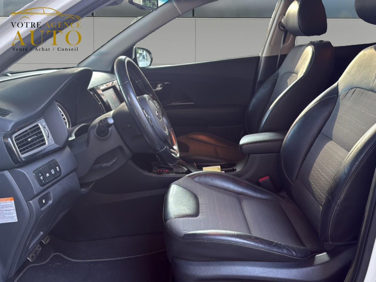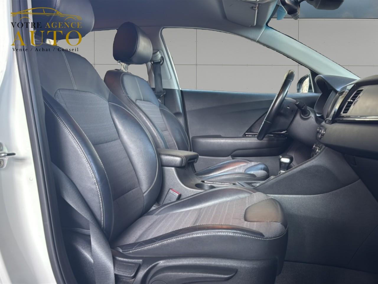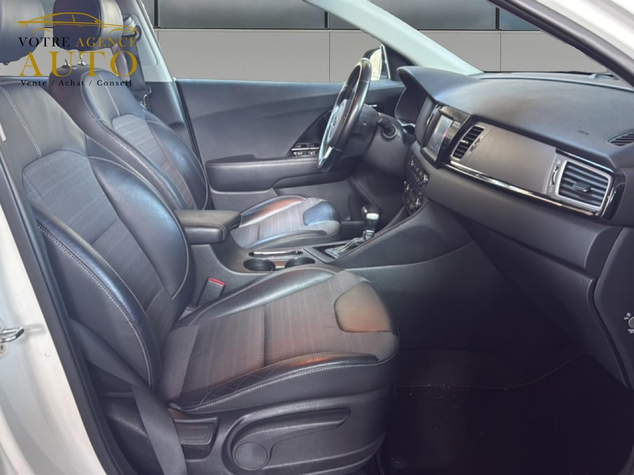 ABS avec répartiteur électronique de freinage (EBD)Accoudoir central arrière avec porte-gobelets intégrésAccoudoir central avant avec espace de rangement et porte-gobeletsAirbag genoux conducteurAirbags frontaux, latéraux et rideauxAlerte de franchissement involontaire de ligne (LDWS)Allumage automatique des feux de détresseAllumage automatique des projecteursAppuie-tête avant et arrière règlables en hauteurAssistance active au maintien de voie (LKAS)Assistance au démarrage en côteBanquette arrière rabattable 40/60Becquet arrière noir laqué intégré au hayon avec feux stop à LEDBouclier avant et arrière couleur carrosserieCaméra de recul avec lignes de guidage activesCapteur de pluieClimatisation automatique bi-zone avec fonction "Driver Only"Compartiments de rangement sous le plancher de coffreCompteur central LCD TFT SuperVision 4,2’’Condamnation centralisée à distanceConnectique audio AUX et USBConnectique de chargement USB à l'intérieur de l'accoudoir central avantContrôle de la pression des pneumatiquesContrôle électronique de la trajectoire (ESC)Crochets de fixation dans le coffreDésembuage automatique du pare-briseDiffuseurs d'air aux places arrièreDirection à assistance électrique asservie à la vitesse (MDPS)Feux arrière à LEDFrein de stationnement commandé au piedInserts noir laqué sur la console centrale, les contre-portes et le volantJantes alliage 18"Kit de dépannage en cas de crevaisonLève-vitres avant et arrière électriquesLève-vitres électriques séquentiel et anti-pincement côté conducteurOrdinateur de bordOuverture de la trappe à essence de l'intérieur du véhiculePack ConfortPare-soleil avec miroir de courtoisie illuminé conducteur et passagerPédalier et repose-pied finition aluminiumPoche aumônière au dos du siège passager avantPoignées de portes extérieures aspect chromePoignées de portes intérieures finition chromeProjecteurs antibrouillardProjecteurs antibrouillard arrière à LEDProjecteurs avant Full LED avec feux de jour à LEDRadars de parking avantRadars de stationnement arrièreRails de toit aluminium satinéRégulateur de couple et assistance au contre-braquage (VSM)Régulateur et limiteur de vitesseRétroviseur intérieur électrochromeRétroviseurs extérieurs avec embase noir laquéRétroviseurs extérieurs couleur carrosserieRétroviseurs extérieurs électriques et dégivrants avec répétiteur de clignotant à LEDRétroviseurs extérieurs rabattables électriquementSellerie cuir-tissu noirSeuils de portes bagdés “Niro“ finition aluminiumSiège conducteur réglable en hauteurSiège passager avant réglable en hauteurSurlignage des passages de roue en composites noirsSystème de fixation ISOFIX aux places arrière latéralesSystème de navigation, écran tactile couleur 7", fonction ECO, cartographie Europe, mise à jour de la cartographie et services connectés TomTom LIVE inclus pendant 7 ans, compatibilité Android Auto et Apple CarPlaySystème de surveillance de la vigilance du conducteurSystème de téléphonie mains-libres BluetoothTémoin de niveau de lave-glaceTémoins de non-bouclage des ceintures avant et arrièreVerrouillage automatique des portes asservie à la vitesseVitres arrière et lunette arrière surteintéesVolant et pommeau de levier de vitesse gainés cuirVolant réglable en hauteur et en profondeur