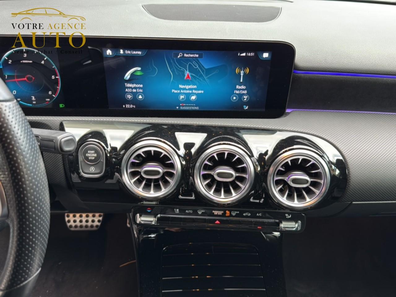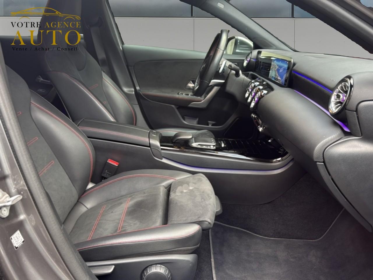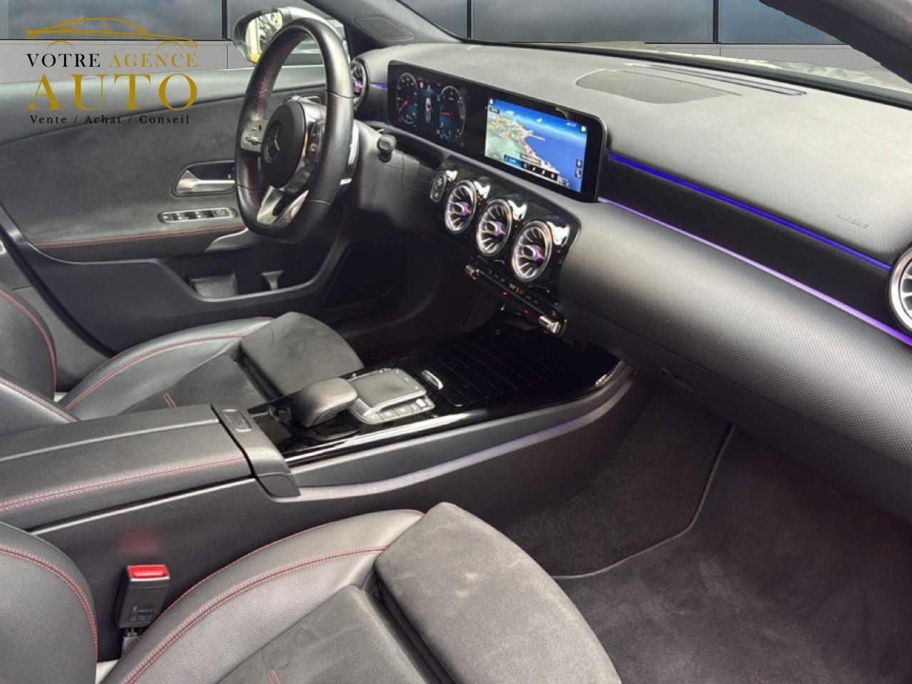 ABS (antiblocage de roues), ASR (antipatinage) et BAS (freinage d'urgence assisté)Accoudoir central avantADAPTIVE BRAKE avec fonction HOLD et aide au démarrage en côte, préremplissage et séchage des freins par freinage en cas de pluieAffichage du non bouclage des ceintures de sécurité aux places arrièreAirbag frontaux conducteur et passagerAirbag genoux conducteurAirbags latéraux (thorax / bassin) avantAirbags rideauxAttention Assist : système de détection de somnolenceAvertisseur de franchissement de ligne actifBaguettes de ligne de ceinture et entourages de vitres chromésBaguettes de seuil avec monogramme "Mercedes-Benz"Boîte à gants éclairéeBoîte de vitesses à double embrayage 8G-DCTBuses de ventilation noires avec cerclage chroméCalandre diamant avec pastilles chromées et lamelle avec insert chroméCapot moteur actif pour la protection des piétonsCiel de pavillon en tissu noirClimatisation automatique THERMATIC à 1 zone avec filtre à charbons actifs contre la poussière, la suie et le pollenConnexion Bluetooth pour téléphone portableConsole centrale Noir brillantDésactivation automatique de l’airbag passager avantDirection paramétrique asservie à la vitesseDossier AR rabattable 40/20/40Double porte-gobelet dans la console centraleDYNAMIC SELECT avec les programmes de conduite « ECO », « Confort », « Sport » et « Individual »Essieu arrière à bras combinésEtriers de freins avant avec monogramme Mercedes-Benz et disques perforésFeux de stop adaptatifsFilets à bagages au dossier des sièges AVFrein de stationnement électriqueFreinage d'urgence assisté actifGarnitures intérieures en microfibre DINAMICA/similicuir ARTICOI-Size et Top Tether pour les sièges arrière extérieursInserts décoratifs en microfibre DINAMICAInterface USB-C dans le vide-poches et dans la console centrale arrièreJantes alliage AMG 45,7 cm (18'') à 5 doubles branches gris titane et argentJupe arrière AMG avec insert décoratif chroméJupe avant AMG avec splitter en finition chromeKit anti-crevaison TIREFITKit carrosserie AMG composé de jupe avant, protections de bas de caisse et jupe arrièreModule de communication LTE pour l'utilisation des services Mercedes me connectPack AdvantagePack visibilitéPavé tactile TouchpadPédalier sport AMG en acier inoxydable brossé avec picots en caoutchoucPeinture noirePré-équipement pour l'autopartage via l'application Mercedes me Car SharingPré-équipement pour Live Traffic Information (service gratuit pendant 3 ans après activation Mercedes me)Pré-équipement pour réglages et suivi du véhicule à distance (service gratuit pendant 3 ans après activation Mercedes me)Prise 12V dans le vide poche de la console centraleProjecteurs hautes performances à technologie LEDRainsensor (Capteur de pluie et de luminosité)Réception radio numérique (DAB)Reconnaissance des panneaux de limitation de vitesseSièges avant avec réglages de la hauteur et de l'approche du siège, de l'inclinaison du dossier, de l'inclinaison de l'assise, de la profondeur de l'assiseSièges avant sport intégrauxSorties d'échappement apparentes en chrome (non fonctionnelles)Système d'Appel d'Urgence Mercedes-BenzSystème de commande vocale et assistant personnel activable grâce à "Hey Mercedes"Système de contrôle de la pression des pneusSystème de stabilisation en cas de vent latéralSystème multimédia MBUX avec fonctionnalités élargies (profils personnalisés, fonctions prédictives, borne Wifi, webradio)Tapis de sol AMGTEMPOMAT (régulateur et limiteur de vitesse)Train de roulement confort avec châssis surbaisséVolant sport multifonction à 3 branches en cuir Nappa, avec méplat, perforations au niveau de la zone de préhension, boutons tactiles Touch-Control, cache chromé et surpiqûres rouges