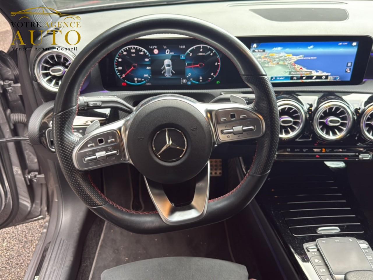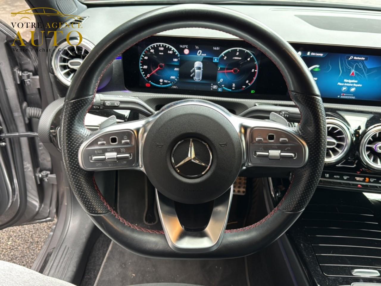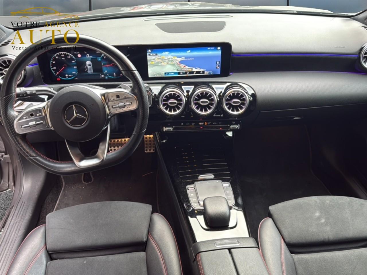 ABS (antiblocage de roues), ASR (antipatinage) et BAS (freinage d'urgence assisté)Accoudoir central avantADAPTIVE BRAKE avec fonction HOLD et aide au démarrage en côte, préremplissage et séchage des freins par freinage en cas de pluieAffichage du non bouclage des ceintures de sécurité aux places arrièreAirbag frontaux conducteur et passagerAirbag genoux conducteurAirbags latéraux (thorax / bassin) avantAirbags rideauxAttention Assist : système de détection de somnolenceAvertisseur de franchissement de ligne actifBaguettes de ligne de ceinture et entourages de vitres chromésBaguettes de seuil avec monogramme "Mercedes-Benz"Boîte à gants éclairéeBoîte de vitesses à double embrayage 8G-DCTBuses de ventilation noires avec cerclage chroméCalandre diamant avec pastilles chromées et lamelle avec insert chroméCapot moteur actif pour la protection des piétonsCiel de pavillon en tissu noirClimatisation automatique THERMATIC à 1 zone avec filtre à charbons actifs contre la poussière, la suie et le pollenConnexion Bluetooth pour téléphone portableConsole centrale Noir brillantDésactivation automatique de l’airbag passager avantDirection paramétrique asservie à la vitesseDossier AR rabattable 40/20/40Double porte-gobelet dans la console centraleDYNAMIC SELECT avec les programmes de conduite « ECO », « Confort », « Sport » et « Individual »Essieu arrière à bras combinésEtriers de freins avant avec monogramme Mercedes-Benz et disques perforésFeux de stop adaptatifsFilets à bagages au dossier des sièges AVFrein de stationnement électriqueFreinage d'urgence assisté actifGarnitures intérieures en microfibre DINAMICA/similicuir ARTICOI-Size et Top Tether pour les sièges arrière extérieursInserts décoratifs en microfibre DINAMICAInterface USB-C dans le vide-poches et dans la console centrale arrièreJantes alliage AMG 45,7 cm (18'') à 5 doubles branches gris titane et argentJupe arrière AMG avec insert décoratif chroméJupe avant AMG avec splitter en finition chromeKit anti-crevaison TIREFITKit carrosserie AMG composé de jupe avant, protections de bas de caisse et jupe arrièreModule de communication LTE pour l'utilisation des services Mercedes me connectPack AdvantagePack visibilitéPavé tactile TouchpadPédalier sport AMG en acier inoxydable brossé avec picots en caoutchoucPeinture noirePré-équipement pour l'autopartage via l'application Mercedes me Car SharingPré-équipement pour Live Traffic Information (service gratuit pendant 3 ans après activation Mercedes me)Pré-équipement pour réglages et suivi du véhicule à distance (service gratuit pendant 3 ans après activation Mercedes me)Prise 12V dans le vide poche de la console centraleProjecteurs hautes performances à technologie LEDRainsensor (Capteur de pluie et de luminosité)Réception radio numérique (DAB)Reconnaissance des panneaux de limitation de vitesseSièges avant avec réglages de la hauteur et de l'approche du siège, de l'inclinaison du dossier, de l'inclinaison de l'assise, de la profondeur de l'assiseSièges avant sport intégrauxSorties d'échappement apparentes en chrome (non fonctionnelles)Système d'Appel d'Urgence Mercedes-BenzSystème de commande vocale et assistant personnel activable grâce à "Hey Mercedes"Système de contrôle de la pression des pneusSystème de stabilisation en cas de vent latéralSystème multimédia MBUX avec fonctionnalités élargies (profils personnalisés, fonctions prédictives, borne Wifi, webradio)Tapis de sol AMGTEMPOMAT (régulateur et limiteur de vitesse)Train de roulement confort avec châssis surbaisséVolant sport multifonction à 3 branches en cuir Nappa, avec méplat, perforations au niveau de la zone de préhension, boutons tactiles Touch-Control, cache chromé et surpiqûres rouges