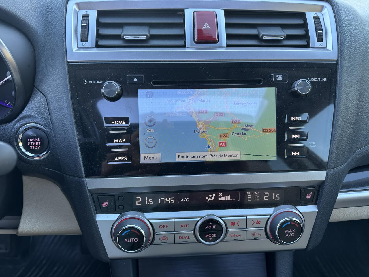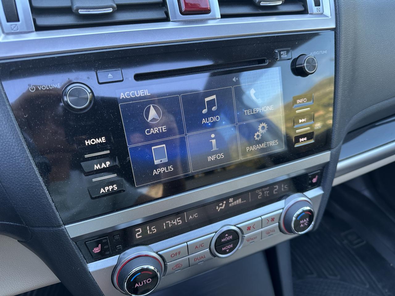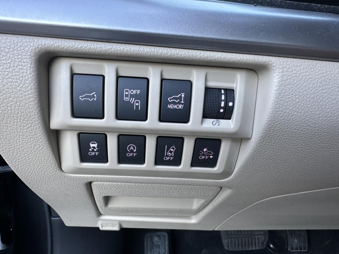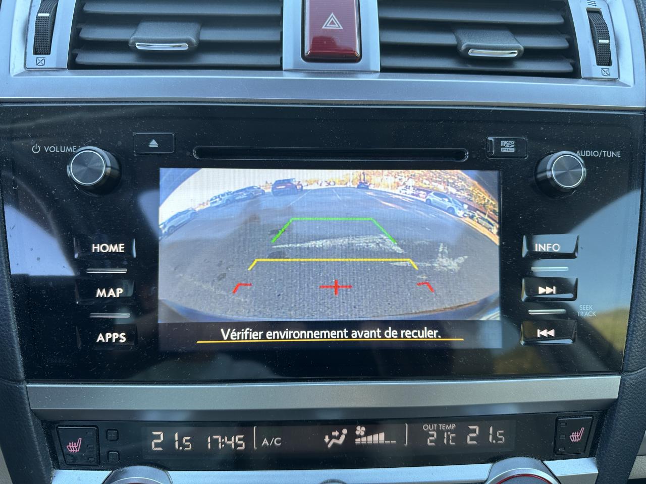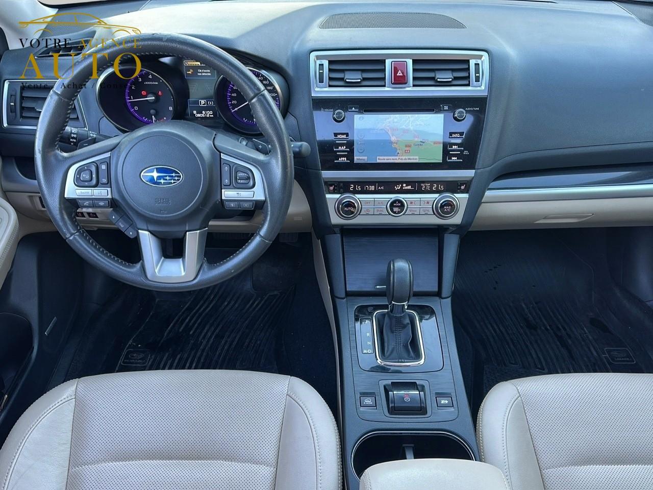 2 crochets à bagages2 prises USB et prise Aux-In4 crochets d'arrimageABS 4 capteurs / 4 canaux avec répartiteur électronique de la force de freinageAccès par code PINAccoudoir central arrièreAide au démarrage en côteAirbags de genoux SRSAirbags frontaux SRSAirbags latéraux SRS (pour sièges avant)Airbags rideaux SRS (avant et arrière, des 2 côtés)Allumage automatique des projecteursApplication SiriAssistance au freinage d'urgenceAumônières au dos des sièges avantAuto start stopBarres de toit couleur ArgentBecquet de toitBouches de chauffage pour les passagers arrièreCache bagages rétractableCaméra de reculCasier de console centraleCeinture avec alarme (pour chaque siège)Ceintures de sécurité arrière 3 pointsCeintures de sécurité avant à prétensionneurs et limiteurs de chargeClignotant à commande séquentielleClimatisation automatique double zone avec filtre anti-poussièreCommandes de l'autoradio au volantCompartiment de rangement sous le plancher de coffreContrôle de tractionDégivrage avant et latéralDégivrage électrique de la lunette arrière avec temporisateurEclairage d'accueilEclairage de coffreEclairage habitacle avec lampes de lectureEcran couleur LCD 5" avec affichage du système Eyesight et jauges électro-luminescentesEssuie-glace à déclenchement automatiqueEssuie-glace arrière à balayage intermittentEssuie-glace avant dégivrantEyeSightFermeture centralisée des portes à distanceFeu arrière antibrouillardFrein de stationnement électroniqueHayon à commande électriqueImmobiliseur moteur (coupe-circuit)Jantes alliage 17''Jauge EcoKit anti-crevaisonLave-pharesMiroirs de courtoisie éclairés avec couvercle (sièges avant)Ouverture intérieure de la trappe à carburantPalette de sélection au volantPare-brise et vitres latérales avant et arrière avec protection UVPédales de sécuritéPlateau centralPochettes latérales avec porte-bouteilles (sur chaque porte)Porte-gobelets arrière (dans l'accoudoir central arrière)Porte-gobelets avantPrise d'alimentation 12 V (dans la console centrale)Projecteurs antibrouillardProjecteurs LED avec correction d'assiette automatiqueReconnaissance vocaleRéglage en hauteur des ceintures de sécurité avantRégulateur de vitesseRétroviseurs électriques rabattables avec clignotants à LED intégrésRétroviseurs extérieurs chauffantsRevêtement de protections latéralesSécurité enfant sur les portes arrièresSI-DRIVE (SUBARU Intelligent Drive)Siège conducteur à réglages électriques 8 directionsSiège conducteur avec fonction mémoireSiège passager à réglage électrique 8 positionsSièges arrière rabattables et repliables 60/40Sièges arrière repliables sur simple pressionSièges avant chauffantsSièges en cuirSystème d'ancrage ISO-FIX pour siège enfantSystème d'entrée sans clé avec démarrage par bouton-poussoirSystème d'infodivertissement SUBARU STARLINK avec navigation à carte SD et système audio : 1 CD + 6 HPSystème de contrôle de la dynamique du véhicule avec bouton OFFSystème de contrôle en descenteSystème de freinage prioritaireSystème de ventilation ARSystème mains-libres compatible BluetoothTémoin d'alerte du niveau de l'huile moteurToit ouvrant électrique coulissant et inclinableTransfert de couple vectoriel actifVitres arrière, vitres de custode et lunette arrière teintéesVitres avant et arrière électriques à impulsion avec système ant-ipincementVolant gainé cuirVolant réglable en hauteur et inclinaisonX-MODE