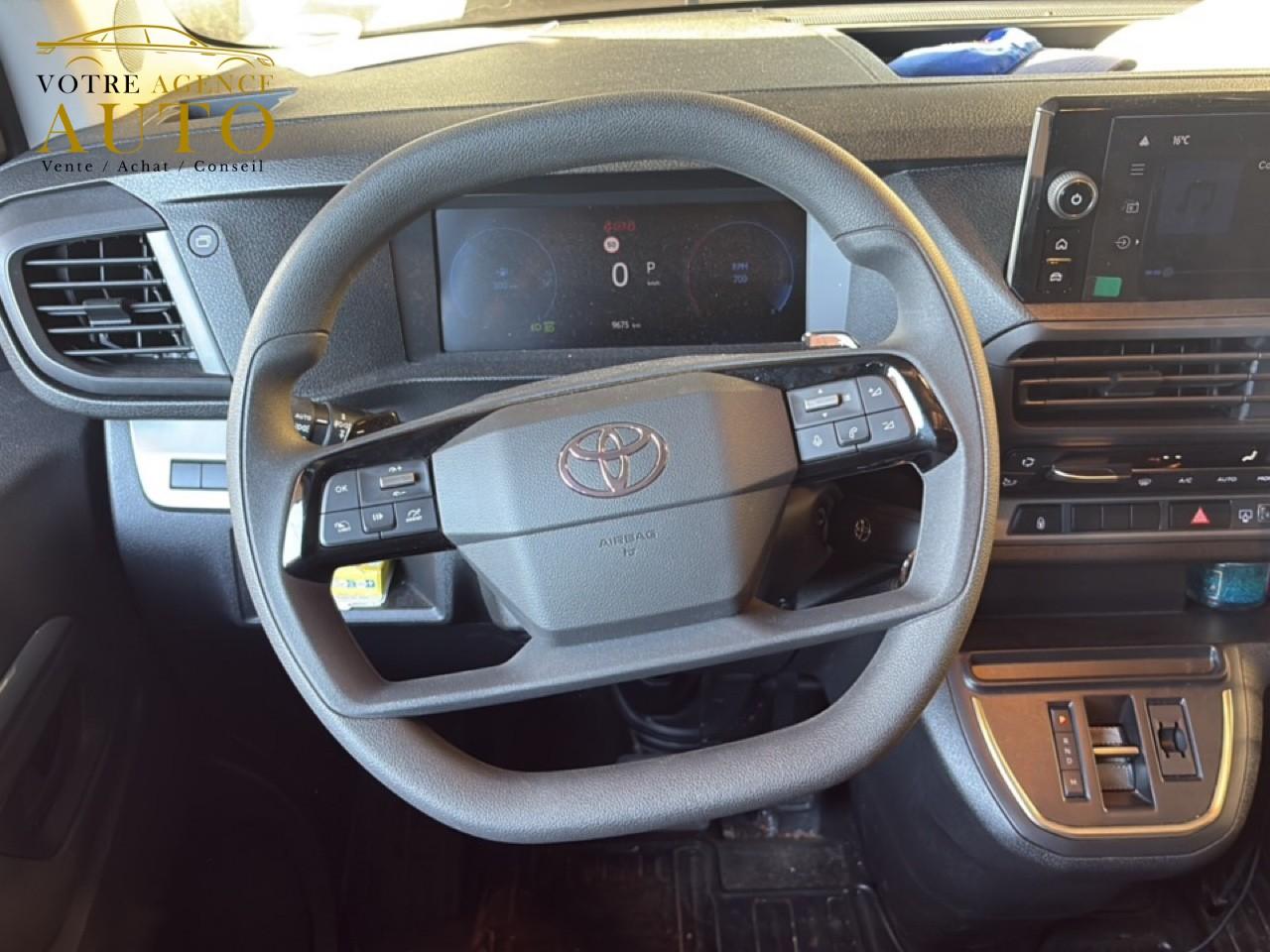 2 Clés à télécommande4 haut-parleursAirbags frontaux, latéraux et rideauxAllumage automatique des projecteursAppel d'urgence - EcallAutoradio AM/FM/DABBanquette passagers avant 2 placesBluetoothBoîte à gants fermée et éclairéeBoîte à gants ouverte côté passagerCloison fixe tôléeCondamnation centraliséeCoques de rétroviseurs noiresEspace de rangement sur la partie supérieure du tableau de bord ouvertEssuie-glace à déclenchement automatiqueFeux de jour à LEDFrein de stationnement électriqueIndicateur de perte de pression des pneumatiquesKit de produits d’entretien “Toyota Car Care”Kit de sécuritéPack ConfortPare-chocs avant et arrière en plastique noirPeinture opaque blanc GlacierPlafonniers dans l’habitacle et dans l’espace de chargementPlancher en bois 9 mm dans la zone de chargementPneumatiques 215/65 R16 C 106 T (Michelin AGILIS 3)Poignée de portes extérieures noiresPort USB type A (recharge et connectivité)Porte latérale droite coulissante tôléePortes arrières battantes tôlées 60/40 avec ouverture à 180°Prédisposition attelagePrise 12 volts AVProgramme "Toyota Experience"Protections latérales en plastique noirRadars de stationnement arrièreRégulateur et limiteur de vitesseRétroviseurs extérieurs dégivrantsRétroviseurs extérieurs rabattables manuellementRétroviseurs extérieurs réglables électriquementRoue de secours homogèneSellerie tissu gris foncéSiège conducteur avec accoudoirSiège conducteur réglable manuellementSystème d'aide au démarrage en côte HACSystème de sécurité Toyota Safety SenseTapis de sol en caoutchoucVitres électriques à impulsionVolant en uréthane
