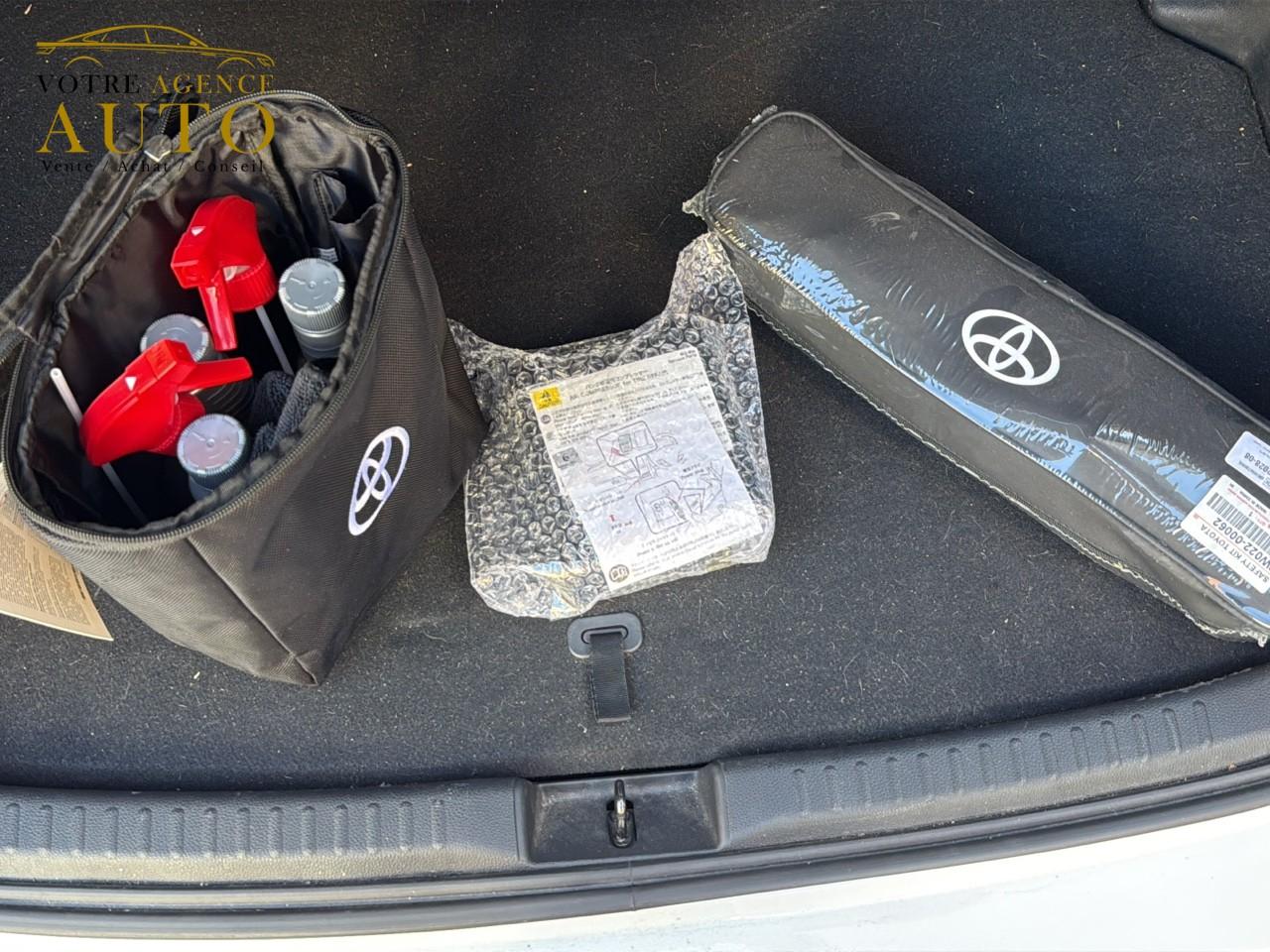 4 haut-parleursAirbags centrauxAllumage automatique des projecteursAntenne de toit « aileron de requin »Appel d'urgence - EcallBanquette arrière rabattable 40/60Caméra de reculCapteur de pluieCiel de toit gris clairClimatisation automatiqueDouble plancher dans le coffreEcran couleur tactile 8” multifonctionEcran multi-informations TFT couleur 4,2"Feux arrière à LEDFeux de jour à LEDFeux de route à LEDJantes alliage 16” SophiaProjecteurs antibrouillard à LEDRégulateur de vitesse adaptatifRétroviseur intérieur électrochromeRétroviseurs extérieurs chauffantsRétroviseurs extérieurs couleur carrosserieSellerie tissuServices connectés MyTSystème Audio Toyota TouchSystème d'ouverture / fermeture et démarrage sans clé “Smart Entry & Start”Système de fixation ISOFIX aux places latérales arrièreSystème Toyota Safety SenseTableau de bord mousséToyota Touch&App compatible avec Apple CarPlay & Android AutoVitres arrière électriquesVitres latérales et lunette arrière surteintéesVolant cuir