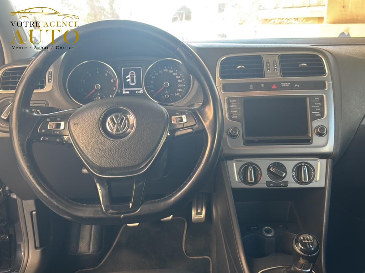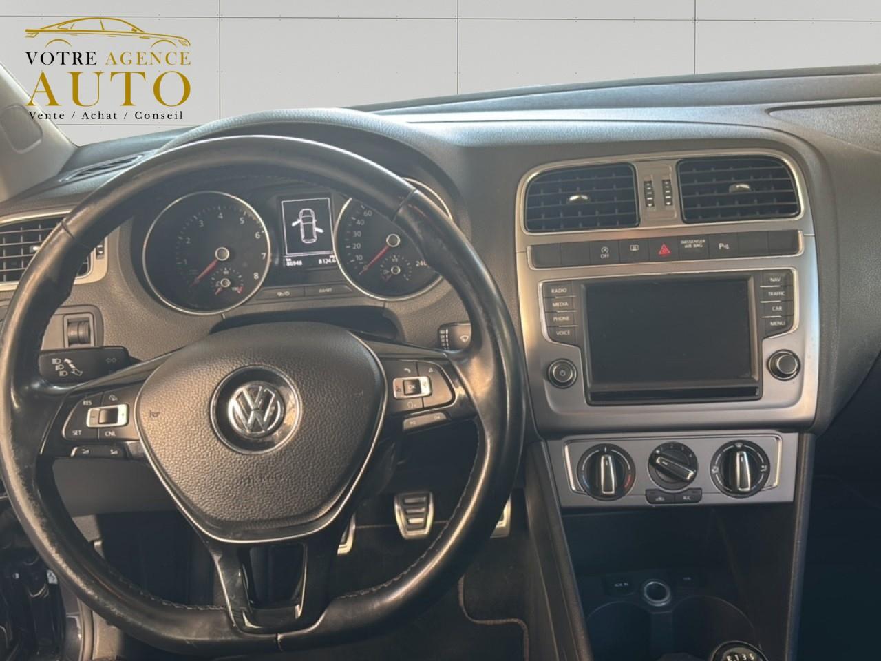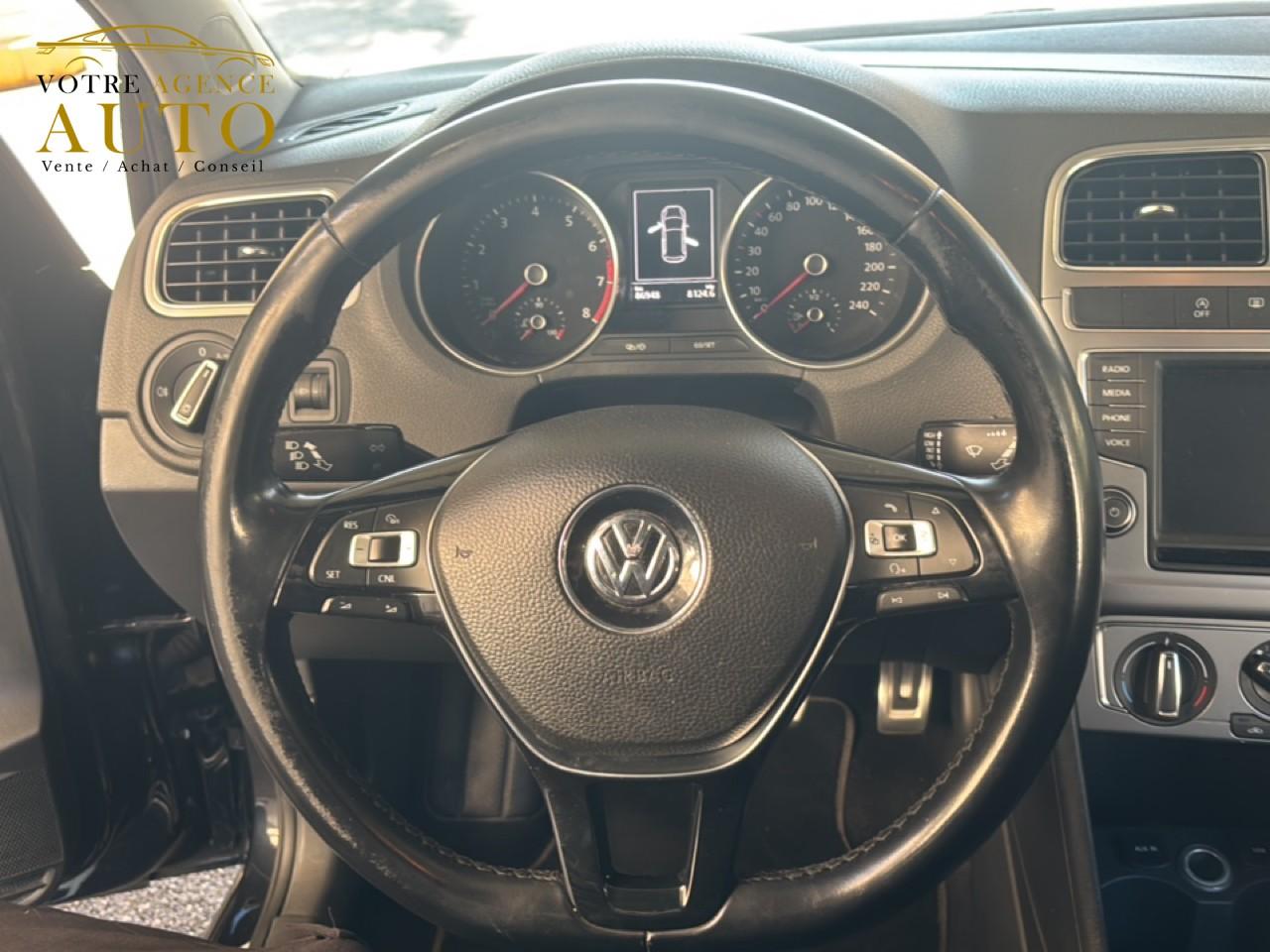 ‘Fatigue Detection' : Système de détection de fatigue du conducteur qui analyse le comportement du conducteur et recommande un temps de repos par l'apparition d'un message visuel et sonore3ème feu stop surélevé4 jantes en alliage léger diamantées 15'' ‘Linas', pneumatiques 185/60 R15 avec écrous antivolAbonnement aux Services Mobiles en ligne Car-Net ‘Guide & Inform' 36 moisAide au démarrage en côte ‘Hill-Hold'Airbag frontaux conducteur et passagerAirbags latéraux/tête avantAlerte de perte de pression des pneusAntenne arrière de pavillonAnti-patinage électronique ASRApplications décoratives ‘argent foncé satiné' sur la console centraleAppuis-tête (3) et ceintures de sécurité 3 points (3) sur la banquette arrièreAppuis-tête à sécurité optimisée à l'avant (2)Aumônières au dos des sièges avantAvertisseur sonore de non-extinction des phares et de non bouclage des ceintures de sécurité (conducteur et passager)Avertisseur sonore deux tonsBacs de rangement dans toutes les portières, à l'avant avec porte-boisson pour des bouteilles à 1,5LBadges spécifiques ‘Allstar'Banquette et dossier arrière asymétriques, rabattables 1/3-2/3, avec double plancher de coffre à bagagesBlocage électronique de différentiel EDSBoîte à gants réfrigéréeCache-bagagesCalandre noire avec baguette chroméeCar-Net "App-Connect"Carrosserie entièrement galvaniséeCeintures de sécurité trois points à l'avant, à enrouleur avec prétensionneurs, réglables en hauteurClignotant confort (1 impulsion = 3 clignotements)Clignotants latéraux intégrés dans le rétroviseurClimatisation manuelle 'Climatic'Correcteur électronique de trajectoire ESP avec amplificateur de freinage d'urgenceCrochet pour sacs dans le coffre à bagagesDéflecteur de toit intégréDirection assistée électro-mécanique asservie à la vitesseDispositif de fixation pour deux sièges enfants suivant norme ISOFIX aux places extérieures arrièreDisques de frein ventilés à l'avantEclairage blanc sur les instruments réglable en intensité, rouge sur les commandesEclairage du coffre à bagagesEclairage du plancher aux places avantEssuie-glace arrière avec commande d'intermittence et lave-glaceEssuie-glace avant avec commande d'intermittence à 4 positions et lave-glaceFeux arrière de brouillardFeux de circulation de jour intégré dans le bouclier avantFiltre à poussière et à pollenGrille de calandre laquée noireGrille de prise d'air avec baguette chroméeHabillage complet du coffre à bagages en feutreInscription ‘BlueMotion Technology' à l'arrière du véhiculeInstrumentation avec tachymètre électronique, compteur kilométrique, totalisateur kilométrique journalier et compte-toursKit anticrevaison (compresseur et produit de colmatage)Lampes de lecture à l'avant (2) et à l'arrière (1)Miroir de courtoisie éclairé sur pare-soleil passager et conducteurMotorisations respectant les futures normes européennes d'émission ‘Euro 6'Oeilletons de fixation dans le coffreOrdinateur de bord ‘Plus'Pack ‘Visibilité'Pack Chrome intérieurPack connectivityPare-chocs couleur carrosseriePédalier en acier inoxydablePlafonnier à temporisation à l'avant avec contacteurs de portièrePoignée de frein à main en cuirPoignées de maintien amortiesPoignées de portes et rétroviseurs extérieur couleurs carrosseriePommeau de levier de vitesses en cuirPort USB compatible iPod/iPhone pour 'Composition Media' et 'Discover Media'Porte-boissons (2) à l'avantPrise 12V à l'avantProjecteurs halogènes doubles H7 et clignotants sous glace commune en verre clairRégulateur de vitesseRégulateur électronique de couple d'inertie MSRRépartiteur électronique de freinage EBVRétroviseur extérieur asphérique côté conducteurRétroviseurs extérieurs réglables électriquement et dégivrantsSellerie en tissu spécifique dessin ‘Stripe'Seuils de portes avant en aluminiumSièges AV réglables en hauteurSticker sur la lunette arrière “40 YEARS POLO”Support pour trousse de secours et triangle de pré signalisationSystème anti-démarrageSystème d'antiblocage des roues ABSSystème de freinage anti multicollision : ce dispositif freine automatiquement le véhicule après un premier choc afin de limiter le risque de multicollisionSystème de ventilation/chauffage 4 vitesses avec commande de fonctionnement en circuit ferméSystème Navigation & Infotainment ‘Discover Media'Système Start/ Stop avec récupération d'énergie de freinageTableau de bord avec revêtement mousséTapis de sol avant et arrièreTémoins de contrôle et indicateur d'intervalle de révisionVerrouillage centralisé à distance, 2 clés pliantes de radiocommande fourniesVitres arrière électriquesVitres athermiques teintées vertesVitres avant électriquesVolant 3 branchesVolant multifonction cuir avec placages en chrome matVolant réglable en hauteur et en profondeurVolant, soufflet du levier de vitesse et poignée du frein à main en cuir avec surpiqûres